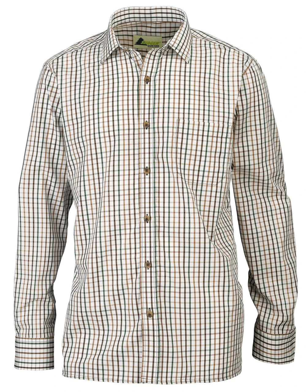 Skogens langærmede mandeskjorte af fin bomuld kommer i klassiske tern i grøn, brun og beige. Beregnet til jagt og fritid.