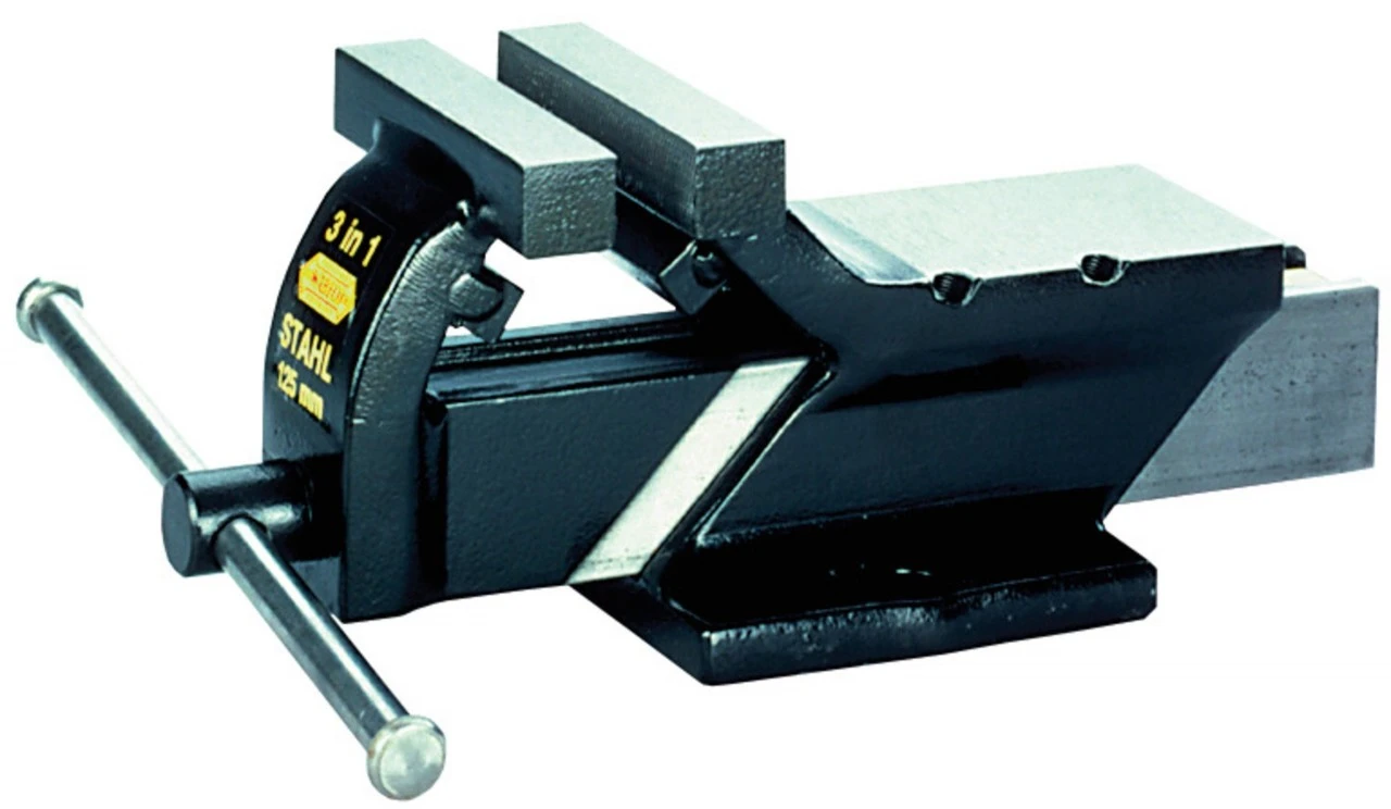 Med hærdede stålbakker, stor amboltflade, rille til bortledning af spåner i styreskinnen.