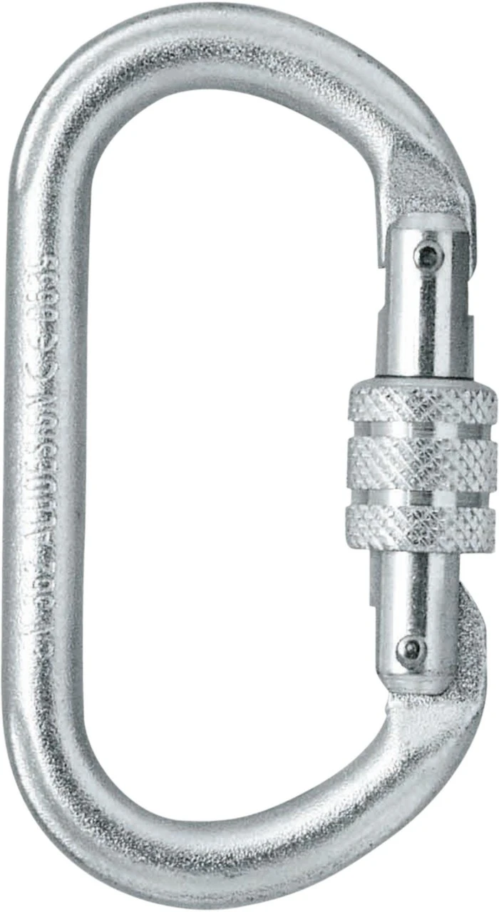 EN 362. Skylotec Ovalsteel SC er en oval skruekarabinhage i stål. Det er velegnet til brug med rebskiver, som holder til sikkerhedsudstyr eller som midterste karabinhage på ståpladsen.