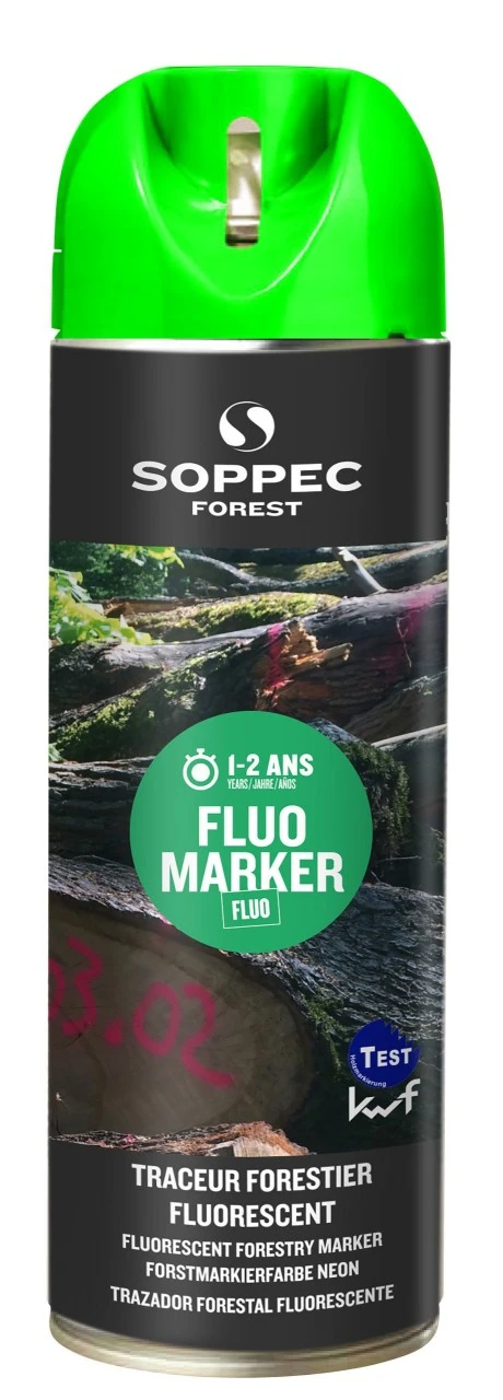 Til markering hvor høj lys-refleksion/synlighed ønskes. Det ergonomiske beskyttelseslåg er det særlige ved denne neonfarve. Sprøjtedyssen er integreret i låget, det giver en ukompliceret håndtering, og forhindre sprøjtning i fejlretninger. farvens egenskaber er: god synlighed, god holdbarhed uanset vejrforhold, tørre hurtigt, hæfter godt – også på vådt underlag. Fluo Marker er mærket med “Grønne Punkt” , er fri for tungmetaller og FCKW /CKW , og er derfor skånsom for ozonlaget . Indhold: 500 ml.