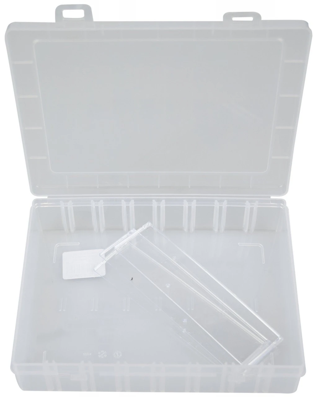 Af Prolypropylen (PP) med stabile hængsler og snaplukke. 3 stk. skillerum som kan placeres individuelt. Ideelt til opbevaring af værktøj, og smådele som f.eks reservedele til savkæder o.s.v. Leveres uden indhold. Mål 180 x 140 x 40 mm. Vægt 150 g.