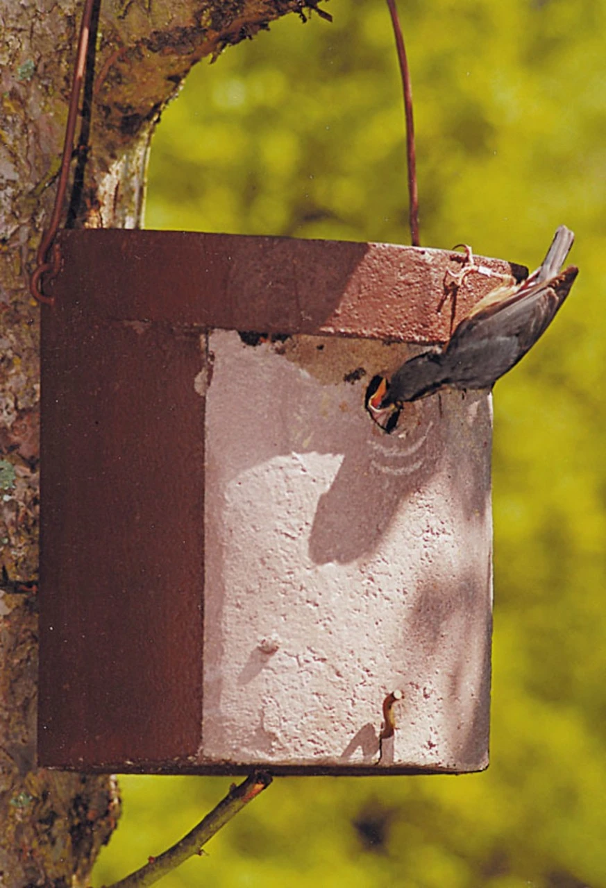 Specielt udviklet til spætmejsen, da den foretrækker denne kasse med 12 cm diameter fremfor den med store indvendige diameter på 20 cm.Flyvehul- Ø 32 mm. Mål 30 x 25 x 25 cm (H x B x D), vægt 8,4 kg.