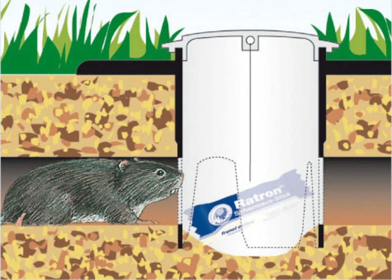Bedst egnet til montering i udgangen. Med en snor ophænges 1 Ratron mosegris-stick, som er nem at kontrollere og udskifte via det aftagelige låg. Pr. hektar anbefales 10-12 mosegrisstationer i et mønster på 30 x 30 m. Højde ca. 20 cm. Vægt 275 g.