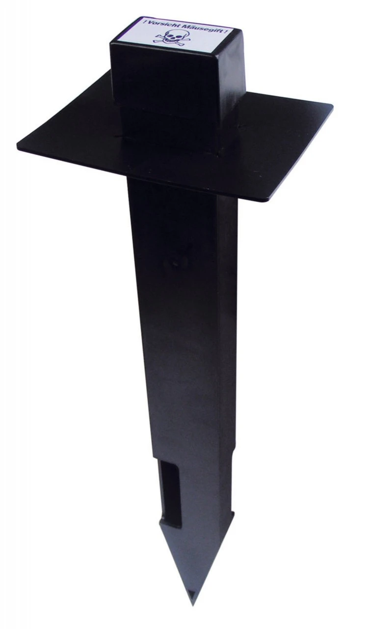 Det nordvesttyske forstforsøgsinstitut har udviklet en lokkestav, som er særligt nem og tidsbesparende at håndtere. Lokkestavene sættes med 25 stk./ha i firkanter på 20 x 20 m i mosegrisenes udgange, og de udstyres med 5 Ratron-mosegris-sticks. Med det aftagelige låg er det nemt at kontrollere og opfylde. Højde ca. 37 cm. Vægt 115 g.