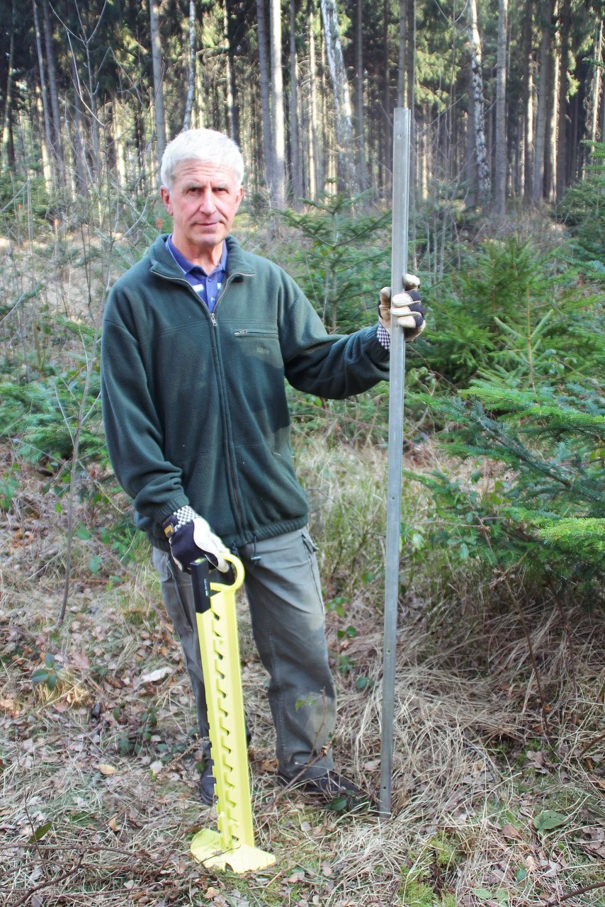 Det todelte træapparat til Z-profilpæle består af en basissøjle med udsparinger i forskellige højder og den egentlige løftestang til optrækning af Z-profilpælene. Basissøjlen har en halvrund jordtallerken, som trædes ned i jorden foran de pæle, som skal trækkes op. Dernæst anbringes løftestangen i en passende højde (åbningsvinkel til basis-søjle ca. 60°). Løftestangen har en rund stålsnude foran, som kan trykkes ind i sidehullerne i Z-profilpæle. På denne måde sidder løftestangens snude nu fast i Z-profilpælen. Man stiller sig på jordtallerkenen som modvægt, og når løftestangen trykkes ned, trækkes Z-profilpælen langsomt op af jorden. Trækapparatets gule farve gør det nemmere at finde i skoven. Vægt 5,5 kg