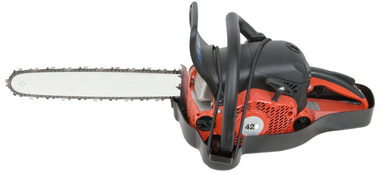 Stabil transportbakke til save uden fjederstartsystem. Beskytter jorden mod snavs, olie og brændstof. Saven kan spændes fast med elastikbåndet. Levering uden motorsav.
