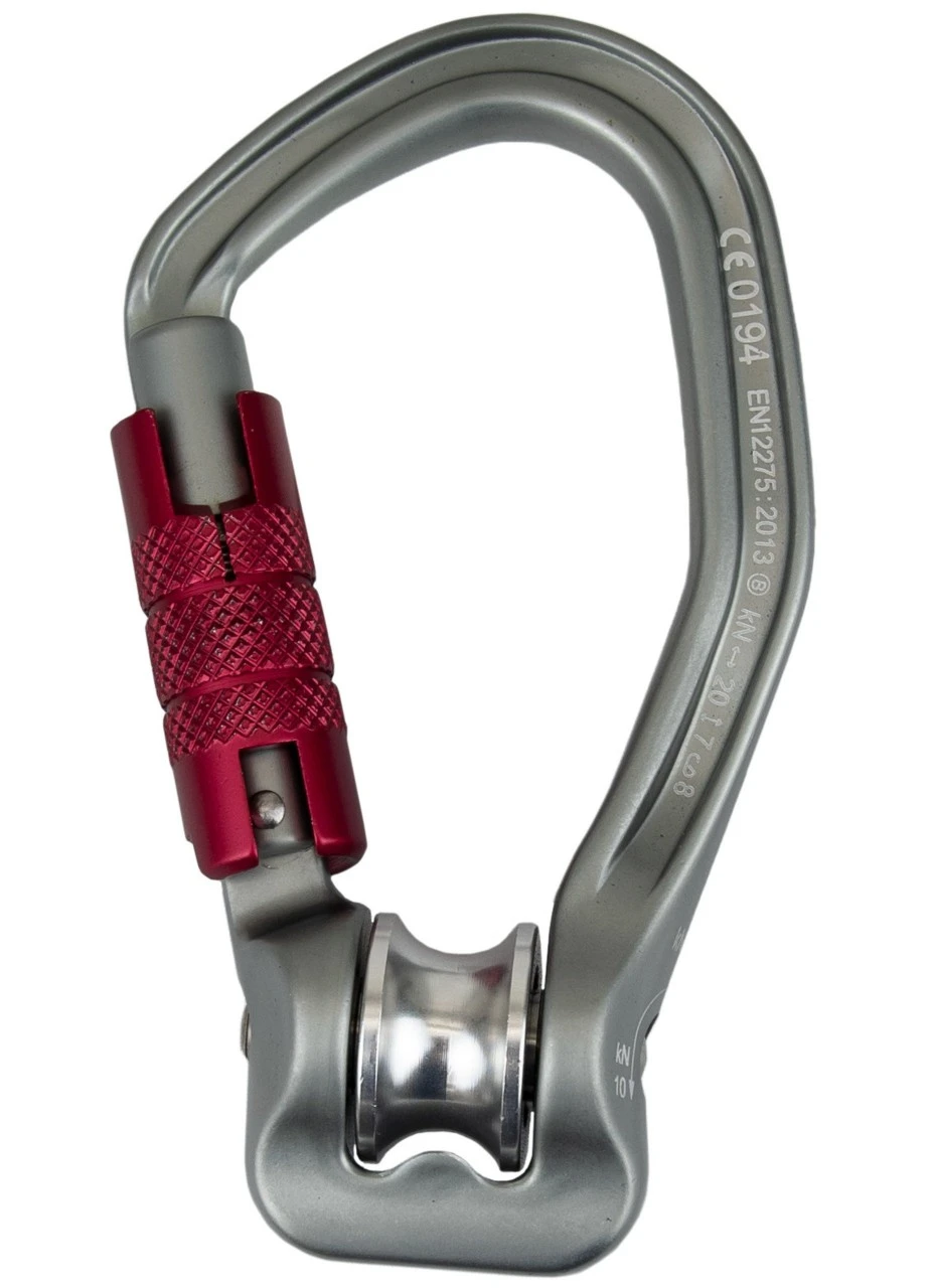 EN 12278. Tree Runner blokkarabin, Spin, er den perfekte kombination af en karabinhage og en blok. Dette åbner en mangfoldighed af nye anvendelsesmuligheder, hvad enten det drejer sig om rebskiver eller til let rigning. Nøglelåsesystemet forhindrer, at karabinhagen Spin klemmes, når rebskiven er monteret. Blokkarabiner er velegnet til reb med en diameter på 7 til 13 mm.